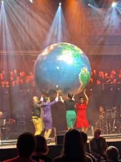 Die Aufführung war verbunden mit einer Spendenaktion für „Brot für die Welt“. Von der Bühne aus wurde ein riesiger Erdball ins Publikum geworfen und von vielen Händen über die Köpfe der Zuschauer getragen. Währenddessen gingen die Spendeneimer durch die Reihen.