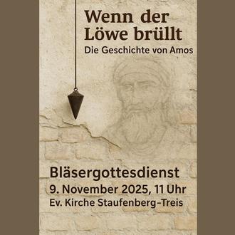 | 11:00 Uhr | Bläsergottesdienst „Wenn der Löwe brüllt“. Im Mittelpunkt steht die Geschichte des Propheten Amos - ein einfacher Hirte, der mit kraftvollen Worten für Gerechtigkeit eintrat. Seine Botschaft ist über 2.700 Jahre alt und spricht doch direkt in unsere Zeit hinein. Der Gottesdienst nimmt den biblischen Ruf zur Umkehr und zum Frieden auf und stellt ihn in Verbindung mit dem Gedenken an die Reichspogromnacht. Die Gestaltung übernimmt der Posaunenchor Fronhausen/Lahn unter der Leitung von Rüdiger Reitz, der mit festlichen und nachdenklichen Stücken den Gottesdienst gestaltet. Alle Interessierten sind herzlich eingeladen - zu einem Vormittag voller Klang, Nachdenklichkeit und Hoffnung. |