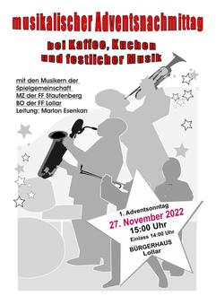 Der Förderverein des Jugendblasorchesters der Freiwilligen Feuerwehr Lollar e. V. lädt ganz herzlich zum musikalischer Adventsnachmittag