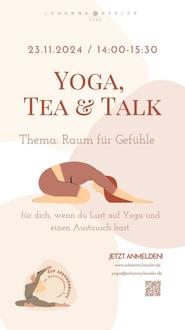 | 14 Uhr | Yoga tea&talk im Gemeindesaal zum Thema „Raum für Gefühle“ |