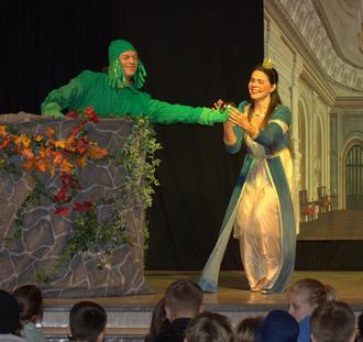 Allendorf (Lumda) – Ein märchenhaftes Erlebnis bot das Tinko-Theater am vergangenen Mittwoch den Schülerinnen und Schülern der 5. und 6. Klassen der Clemens-Brentano-Europaschule. Mit ihrer fantasievollen Inszenierung von „Der Froschkönig“ verwandelte die Theatergruppe die Aula der Schule in eine zauberhafte Märchenwelt.
