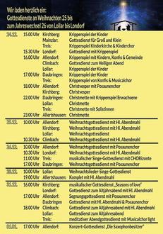 | 16:00 Uhr | Konfirmandenunterricht in Treis: Vorbereitung auf das Krippenspiel |