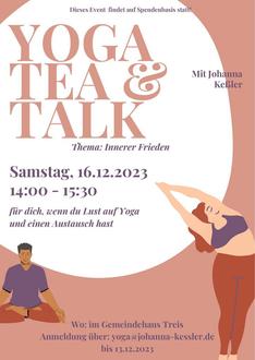 | 14:00 Uhr | Yoga Tea&Talk im Gemeindesaal zum Thema: „Innerer Frieden“ auf Spendenbasis |