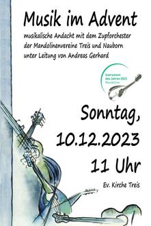 | 11:00 Uhr | musikalischer Gottesdienst mit dem Mandolinenorchester Treis/Nauborn unter der Leitung von Andreas Gerhard |