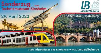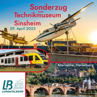 Wir freuen uns, wenn wir Sie an Bord unserer Sonderzugfahrt ins Technikmuseum oder nach Heidelberg begrüßen dürfen.