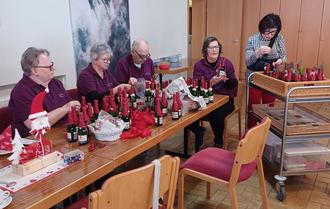 Die von Mechthild arrangierte Tischdeko war einmal mehr vom Feinsten, - Wohlfühlatmosphäre garantiert,- das Team deckte die Tische, bereitete noch die Geschenke an unsere Vereinsmitglieder vor und so konnte unsere Feier beginnen.