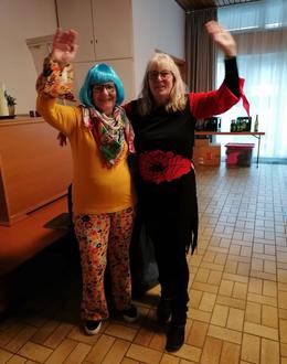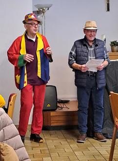 Als 1. Programmpunkt hatten sich Dieter und Erwin einen alten Karnevalshit der " Bläck Fööss " vorgenommen. Mit dem Refrain " Hej dout es wieh ean do dout es wie ",der lauthals mitgesungen wurde, konnten sich viele identifizieren und die jeweiligen Körperteile wurden angezeigt. Volker Harbach hatte vor Jahren den kölschen Text auf " Träser Platt " übertragen. Mit Humor und Selbstironie waren die diversen Gebrechen gleich besser zu ertragen!