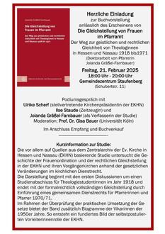 Herzliche Einladung zur Buchvorstellung der Doktorarbeit unsere Pfarrerin Jolanda Gräßel-Farnbauer am 21. Februar um 18:00 Uhr im Gemeindezentrum Staufenberg (s. Plakat)