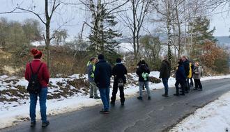Nicht weit vom Ortsrand, nächster Stopp bei der Sandgrube. An den steilen Sandwänden konnten wir die Bruthöhlen der seit einigen Jahren als Sommergäste kommenden Bienenfresser erkennen. Im Sommer werden hoffentlich auch in diesem Jahr wieder Gebirgsstelzen in diesem Gebiet brüten.