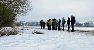 Gute Bedingungen für die diesjährige Winterwanderung: die Felder zeigten sich bei niedrigen Plusgraden unter einer geschlossenen Schneedecke. So trafen sich 16 Vereinsmitglieder, um die Wanderung nach Mainzlar anzutreten.