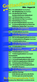 Wie seit einigen Jahren üblich, finden die Gottesdienste bis Ostern im Gemeindehaus statt (mit Ausnahme der Sternstunde). Damit möchte die Kirchengemeinde Treis ihren Beitrag leisten Energie und Heizkosten zu sparen.