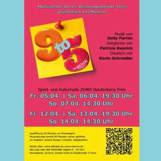 Im April finden wieder Musicalaufführungen unseres Musicalchores in der Sport- und Kulturhalle statt. „9 to 5“ basiert auf dem gleichnamigen Film aus den 80ern und spielt in den späten 70ern - das Musical handelt von Freundschaft und Rache, ist unverschämt, provokant und natürlich auch ein bisschen romantisch. Die energiereiche Show bietet überschäumende Musik und Figuren direkt aus dem Leben. Musik und Songtexte stammen von Dolly Parton (mit freundlicher Genehmigung des MTI Verlages, vertreten durch Musik und Bühne). Sichern sie sich ihre Tickets unter reservix.de. Wenn sie die Arbeit des Musicalchors gerne finanziell unterstützen möchten, freuen wir uns sehr über eine Spende auf das Konto der Kirchgemeinde Treis (Verwendungszweck: Musical).