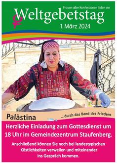 | 18.00 Uhr | Gemeindezentrum Staufenberg: Weltgebetstag (s. Plakat) |