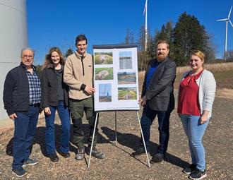 Vorstellung der Windkraftanlage (von links): Ortsvorsteher Gerald Linn, die Geschwister Ohnesorg, 1. Beigeordneter Thorsten Schmidt und stellvertretende Ortsvorsteherin Angelique Machnik