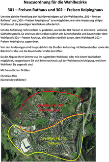 Um eine gleiche Verteilung der Wahlberechtigten auf die Wahlbezirke „301 – Freisen
