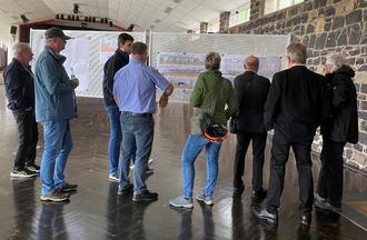 Beim bundesweit stattfindenden „Tag der Städtebauförderung“ am vorigen Samstag konnten sich Interessierte und Fachkundige die Pläne für Um- und Anbau der Festhalle Oberkirchen anschauen und natürlich auch Fragen stellen. Auch Staatssekretär Torsten Lang mit Mitarbeitern des saarländischen Innenministeriums war Gast.