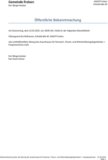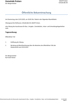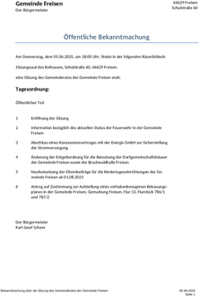 | 2 | Beratung und Beschlussfassung über die Abnahme des öffentlichen Teils der Niederschrift vom 03.04.2025 |