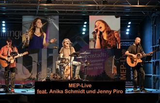 Die 3 Vollblut-Musiker mit langjährigen Erfahrungen bieten auf 10 Saiten - sprich 2 akustischen Gitarren - und Percussion, gepaart mit einem makellosen mehrstimmigen Gesang, handgemachte Live-Musik vom Feinsten. Interessante Arrangements, wechselnde Instrumente und gesangliche Experimente, sorgen dabei für den gewollten AHA-Effekt. Seit nunmehr 15 Jahren ist MEP-Live mit diesem Konzept auf Tour. Es gibt kaum eine Bühne im Saar/Pfalz-Raum auf der das Trio noch nicht gespielt hat. Aber auch überregional und international sind die Musiker von MEP-Live unterwegs. So spielen sie u.a. regelmäßig in Österreich (Kufstein), Frankreich und Luxembourg. Besonderer Glanzpunkt an diesem Abend sind aber die beiden Sängerinnen Anika Schmidt und Jenny Piro.