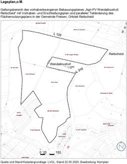 Die Grenze des räumlichen Geltungsbereiches der Teiländerung umfasst den Geltungsbereich des vorhabenbezogenen Bebauungsplanes mit Vorhaben- und Erschließungsplan „Agri-PV Wendalinushof, Reitscheid“. Die genauen Grenzen des Geltungsbereiches der Teiländerung des Flächennutzungsplanes sind dem beigefügten Lageplan zu entnehmen. Er umfasst eine Fläche von ca. 13 ha.