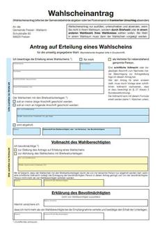 Sollten Sie am Wahltag verhindert sein und nicht persönlich im Wahllokal wählen können, haben Sie die Möglichkeit, Ihre Stimme per Briefwahl abzugeben. Hierzu füllen Sie bitte den auf der Rückseite der Wahlbenachrichtigung aufgedruckten Antrag aus und schicken diesen an das Rathaus zurück. Alternativ kann die Beantragung der Briefwahlunterlagen auch auf unserer Internetseite www.freisen.de oder durch Scannen des QR-Codes auf der Wahlbenachrichtigung erfolgen.