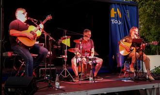 Als Fazit dieses Konzertes kann man festhalten: 3 tolle Stimmen, 2 Gitarren, 1 Keyboar und ein Cajon – mehr braucht es nicht. Die drei sehr gut harmonierenden Stimmen gehören zu Birte Steinmetz, Horst Friedrich und Wolfgang Zimmer, alle drei aus Dillingen. Der Initiator des Duos 3OF.US, Horst Friedrich, ist im Saarland kein Unbekannter. Viele Musikfans kennen ihn u.a. von SIMPLY UNPLUGGED, FRIENDZ oder der Eagles-Cover-Band DESPERADO, bei der auch Birte Steinmetz mitmischt. Auch als Komponist hat er sich einen Namen gemacht. So stammt u.a. die Titelmelodie der Serie Heinz Becker aus seiner Feder.
