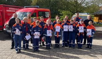 An diesem Samstag konnten unser Gemeindewehrführer Jochen Becker und der Gemeindejugendbetreuer, Nils Haberkorn, an alle sechzehn angetretenen Jugendlichen die Urkunde und das Abzeichen der Jugendflamme 1 überreichen. Herzlichen Glückwunsch an alle umgesetzt und weiterhin viel Spaß an der Arbeit für eine gute und wichtige Sache. Wieder einmal kann die Gemeinde mit Stolz auf unsere Feuerwehr blicken und sich im Ernstfall sicher fühlen.