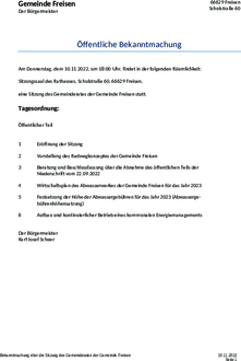 eine Sitzung des Gemeinderates der Gemeinde Freisen statt.