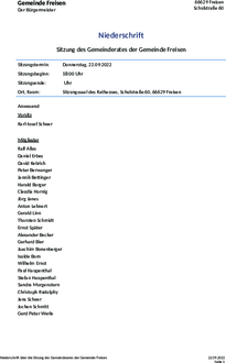 | Ort, Raum: | Sitzungssaal des Rathauses, Schulstraße 60, 66629 Freisen |