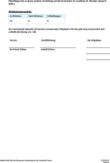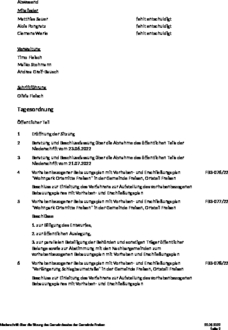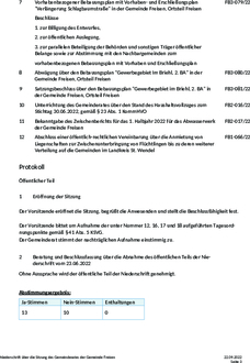 | 2 | Beratung und Beschlussfassung über die Abnahme des öffentlichen Teils der Niederschrift vom 23.06.2022 |
