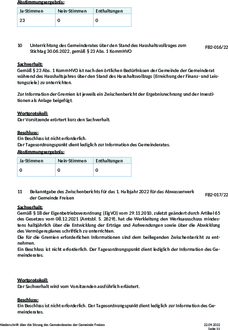 | 11 | Bekanntgabe des Zwischenberichts für das 1. Halbjahr 2022 für das Abwasserwerk der Gemeinde Freisen — FB2-017/22 |