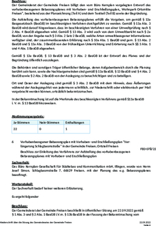 BA“ fand vom 30.05.2022 bis 01.07.2022 statt. Die während dieser Zeit vorgebrachten Stellungnahmen der Behörden und sonstigen Träger öffentlicher Belange sowie der Nachbargemeinden hat der Gemeinderat der Gemeinde Freisen mit dem in der beiliegenden Beschlussvorlage dargestellten Ergebnis geprüft. Bürgerinnen und Bürger haben sich zur vorliegenden Planung nicht geäußert.