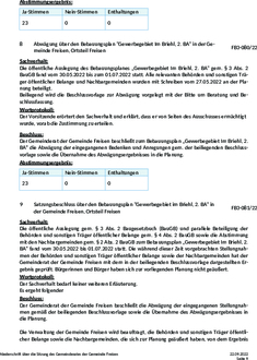 | 9 | Satzungsbeschluss über den Bebauungsplan "Gewerbegebiet im Briehl, 2. BA" in der Gemeinde Freisen, Ortsteil Freisen — FB3-081/22 |