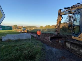 Zurzeit sind die Tiefbauarbeiten ausgangs „In der Kreuzwiese“ zur L133 (Umgehungsstraße) in vollem Gange. Damit wird im Zuge des Radwegeverkehrskonzepts das jahrzehntelang „unfertige“ letzte Teilstück in dieser Straße nun endlich fertiggestellt. In diesem Zuge ist es auch gelungen, Tempo 70 in diesem Bereich der Umgehungsstraße beim Landkreis durchzusetzen. Mehrere Anläufe beim Landkreis, hier die Geschwindigkeit zu begrenzen, fanden in der Vergangenheit leider keinen Zuspruch. Einen besonderen Dank an Ortsvorsteher Jörg Janes, der sich zusammen mit der Gemeindeverwaltung hartnäckig für die Baumaßnahme und die Entschärfung dieses Gefahrenpunktes eingesetzt hat.