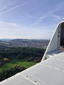 Durch die Dachluke kletterten wir nach draußen, um den atemberaubenden Ausblick aus 140 m über unsere Gemeinde zu genießen. Ein wirklich beeindruckendes Erlebnis, oben auf dieser Windkraftanlage zu stehen. Ich bedanke mich bei der Ökostrom Saarland für die Möglichkeit daran teilzunehmen. Ebenso danke ich für die jahrelange gute Zusammenarbeit zwischen der Ökostrom Saarland und unserer Gemeinde bei den verschiedenen Projekten.