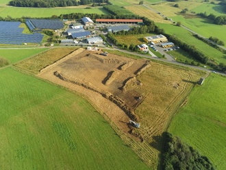 Zurzeit wird das Gewerbegebiet Schwann (ehemalige Raketenbasis Grügelborn/Reitscheid) erweitert. Aktuell sind die Abbrucharbeiten komplett und ein Großteil der Erd- sowie vorbreitende Kanalbauarbeiten weitestgehend abgeschlossen. Stichkanal samt Unterbau Stichstraße sowie die Hausanschlüsse der neuen Gewerbegrundstücke konnten noch vor Jahresende fertiggestellt werden. Damit liegen wir sehr gut im Bauzeitenplan. Es werden bei diesem ersten Teilbauabschnitt rund 34.000 m² erschlossen; die förderfähige Gesamtinvestition beträgt 3.205.037,07 €. Zwei Luftbilder zeigen den Fortschritt der Arbeiten vom Mutterbodenabtrag bis zum Status Quo.