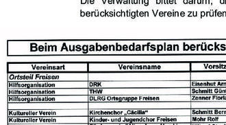| Die Fraktionsvorsitzenden haben sich getroffen und gemeinsam und fraktionsübergreifend ein Investitionsprogramm für den Ortsteil Freisen erarbeitet. | |