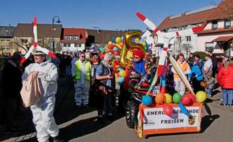 Energiegemeinde Freisen - mit diesem Motto führte unser Bürgermeister Karl-Josef Scheer und der erste Beigeordnete Thorsten Schmidt gemeinsam mit den Ortsvorstehern Matthias Bottelberger, Erne Später, Jörg Janes, Gerald Linn, Harald Borger und Anton Lehnert den Rosenmontagsumzug in Freisen an. Nach zwei Jahren ohne Straßenkarneval aufgrund Corona durften die Jecken nun bei herrlichem Sonnenschein wieder durch die Straßen ziehen. Selten war der Umzug so gut besucht und die Akteure wie die Zuschauer waren von der großartigen Stimmung begeistert. Rund zwanzig Fußgruppen und Prunkwagen konnten bestaunt und bejubelt werden. Ein besonderer Dank geht an die vielen ehrenamtlichen Helferinnen und Helfer bei der Absicherung der Fahrzeuge sowie der Freiwilligen Feuerwehr, dem THW und dem DRK für die Sicherung der Umzugsstrecke.