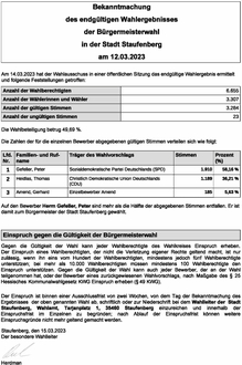 Bekanntmachung Ergebnis BM Wahl