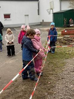 Die Kinder der Kita „Am Buchenberg“ in Daubringen weihten am 28.11.2025 ihre neue Eisenbahn auf dem Außengelände ein. Eine kurze Rede und das symbolische Durschneiden des Bandes wurden feierlich von den Vorschulkindern übernommen. Angestoßen wurde anschließend mit Kinderpunsch und die Freude über das neue Spielgerät war groß.