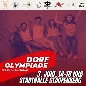 Als Kooperationsveranstaltung, welche von einer Gruppe junger Menschen aus den Staufenberger Sportvereinen und Jugendzentren organisiert wird, findet am Samstag, den 3. Juni, im Zeitraum von 14-18 Uhr erstmals die Staufenberger Dorfolympiade für Kinder- und Jugendliche im Alter von 10-16 Jahren statt. Neben den Sportvereinen SV Staufenberg, TSV Treis, TV Treis und TV Mainzlar bringt sich auch die Phoenix Fight Academy aus Lollar ein. Die organisatorische Leitung übernimmt das Kinder- und Jugendbüro der Stadt Staufenberg.