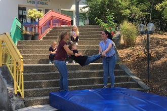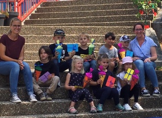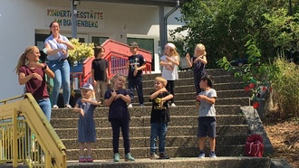 Am Freitag, den 29.07.2022 feierte die Kita „Am Buchenberg“ in Daubringen die Verabschiedung der zukünftigen Erstklässler. Ein Tag, der viel Vorfreude und Aufregung beinhaltete und das Ende einer ganzen Abschiedswoche, dem Wunschkonzert, bedeutete. In gemeinschaftlicher Abstimmung wird die letzte Kitawoche gemeinsam von den Kindern geplant. Wir besuchten die Burg Staufenberg, den Spielplatz in Staufenberg und der Eisdiele „Roberto“. Bevor die Abgänger symbolisch aus der Kita „geworfen“ wurden, führten sie ihren Eltern, Geschwistern, Erziehern und Kitakindern einen Tanz auf. Zum Lied „Spring“ aus dem Film „Die Schule der magischen Tiere“ haben die Kinder im Rahmen der Vorschularbeit einen Tanz erarbeitet. Der letzte Kitatag bedeutet Verabschiedung, Erinnerungen, Vorfreude und der Beginn eines neuen Lebensabschnitts. Wir wünschen den neuen Erstklässlern und Eltern schöne Ferien und einen tollen Start in die Schulzeit und bedanken uns für den schönen Kirschbaum, der uns immer an die gemeinsame Zeit erinnern wird.