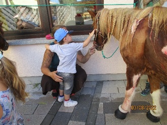 Dem glücklichen Umstand, dass wir nun eine Ponybesitzerin in unserem Team haben, ist es geschuldet, dass nun des Öfteren die Ponys Pauline und Kobold mit ihrer Freundin Flicka den Kindergarten besuchen und die Kinder unter Anleitung verschiedene Aktionen mit den Ponys unternehmen. Die 3 gehören zu den Shetlandponys und sind sehr geduldig.