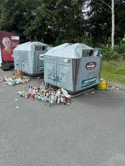 Unsere in den sozialen Medien und auch in der Tageszeitung veröffentlichten Beschwerden haben Wirkung gezeigt. Die Staufenberger Glascontainer wurden zwischenzeitlich in allen Stadtteilen vom Abfuhrunternehmen Knettenbrech + Gudurlic geleert. Mit Ausnahme der Glascontainer am Ortsausgang von Daubringen wurden ebenso die auf dem Boden abgestellten „Flaschenmeere“ von Mitarbeitern dieses Abfuhrunternehmens entsorgt. Wir gehen davon aus, dass dies in Daubringen noch nachgeholt wird und danken der Firma Knettenbrech + Gurdulic für ihre schnelle Reaktion.