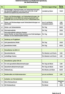 | (4) | Politische Parteien und Wählergruppen sind von der Zahlung der Gebühren innerhalb von sechs Wochen vor Wahlen befreit. Hiervon ausgenommen ist das Aufstellen von Großflächenwerbung, für das eine reduzierte Gebühr erhoben wird. |