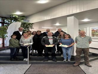 Obere Reihe v. l.: Bürgermeister Peter Gefeller, Anja Fina, FB-Leitung Kita Yvonne Manygel, Sabine Voh, Horst Dietz, Ulrich Schomber, Untere Reihe v. l.: Personalrat-Vorsitzende Manuela Weimar, Beate Lehnert, Stefan Kreiling, Stefanie Klein, Carmen Döll und FB-Leitung Bauamt Thomas Kreiling