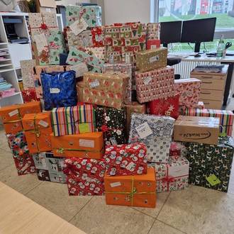 Sven Lenz von der Organisation „Lift Ukraine“ und Bärbel Milke als Flüchtlingsbeauftragte unserer Stadt haben das Projekt „ Weihnachtsgrüße in der Box“ ins Leben gerufen. Die Resonanz war erstaunlich. Nahezu 100 Päckchen in Schuhkartonformat für Kinder im Alter von zwei bis zwölf Jahren befinden sich nun auf dem Weg in ein Waisenhaus bzw. in eine Rehaklinik in Ternopil in der Ukraine. Auch ein Teil der Krippenspielkinder der Kirchengemeinde Kirchberg hatte ihre Freude daran, Gutes zu tun und andere Kinder zu erfreuen. Die Päckchen wurden liebvoll eingepackt und mit persönlichen Weihnachtsgrüßen ausgestattet. An dieser Stelle nochmals herzlichen Dank an alle Mitwirkenden, die so viel Freude in ein kriegsverwundetes Land bringen.