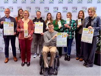 Informieren zum Internationalen Tag der Menschen mit Behinderungen über den DUOday im Landkreis Gießen (v. l.): Sozialdezernent Frank Ide, Katharina Steinfeld (Integrationsfachdienst Gießen/Wetzlar), Mirjam Aasman (Jugendwerkstatt Gießen), Annika Heuser (ZAUG), Samantha Fischer (IHK Gießen-Friedberg), Michael Volter (Landkreis Gießen), Jenny Truhöl (Handwerkskammer Wiesbaden), Petra Emin (Lebenshilfe Gießen), Larissa Albohn (EAA) und Katharina Neu (Jugendwerkstatt Gießen).