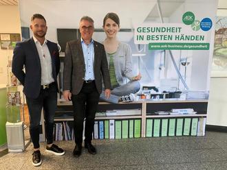 Benjamin Lerch (links), Mitarbeiter der AOK und Bürgermeister Peter Gefeller