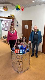 Die Theatergruppe Odenhausen, organisiert durch die VGO, führte das Theaterstück „Mit Vollgas in die 80er“ auf. Die Zeitmaschine war ein Bestandteil der Aufführung. Nun verreisen die Kinder der Kita Bunte Villa Odenhausen damit zu ihren gewünschten „Reisezielen“. Im Namen der Theatergruppe übergaben Martina Sprotte und Uwe Hermer (er hat die Zeitmaschine gebaut) die Zeitmaschine an die Kinder der Kita. Das Team um Kitaleiter Thorsten Dreyer sagen vielen Dank für das schöne Geschenk.