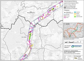 Fortsetzung Kartierung 380 kv Leitung Borken - Gießen - Karte